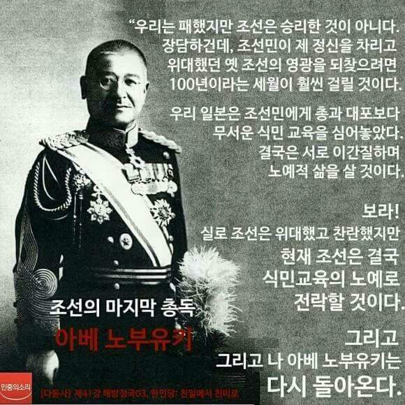 기분나쁘게도 노부유키의 예언이 틀리지않았다. 틀린 부분도 있긴 하다. 옛 영광을 되찾는데 백년이 걸릴 거라 했는데 지금의 우리나라를 보면 백년으로는 부족해보인다. 역사수업을 할 때마다 노부유키의 예언을 들려주면 아이들은 소름끼친다는 반응이었다. 그렇다. 노부유키의 말처럼 우리나라가 일제를 청산하고자 노력하고 옛 조선을 찾는데는 많은 시간이 필요할 것인데도 일제 잔재의 청산 노력없이 오히려 일제 식민교육을 그리워하는 사람들 곧 친일파의 후손들은 여전히 이나라 주요 요직에서 떵떵거리며 살고있다. 물론 옛 조선의 왕정으로 돌아가자는 이야긴 아니다.