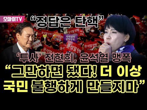 "정답은 탄핵" '투사' 전현희, 윤석열 맹폭 "그만하면 됐다! 더 이상 국민 불행하게 만들지마"